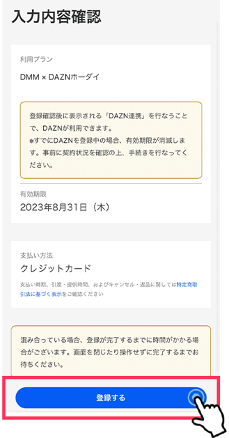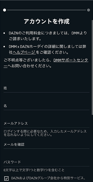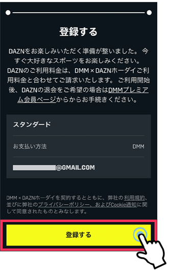 具体的にDMM×DAZNホーダイに登録する手順は下記の通りです。
